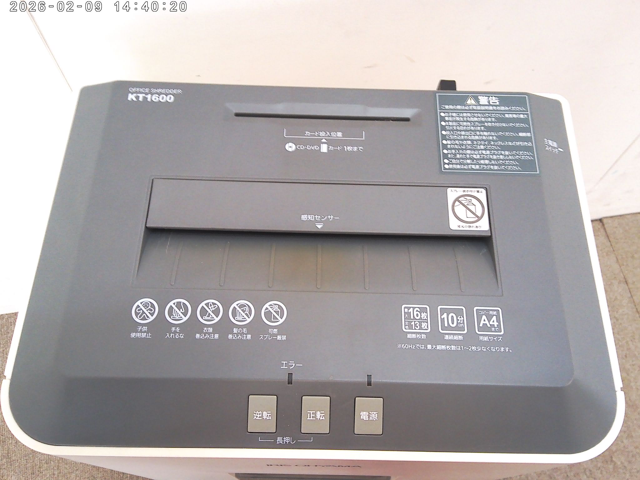 細断能力: A4コピー用紙を最大16枚まで同時に細断可能です。
