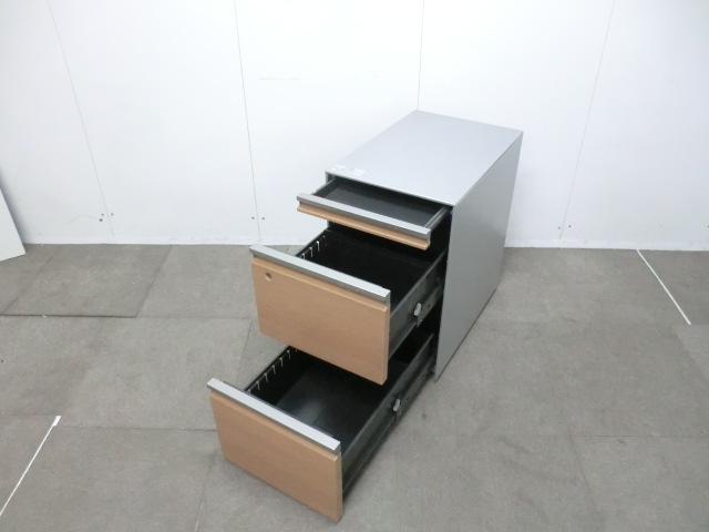 オカムラ / 木目調 【中古】 3段ワゴン | 中古オフィス家具通販